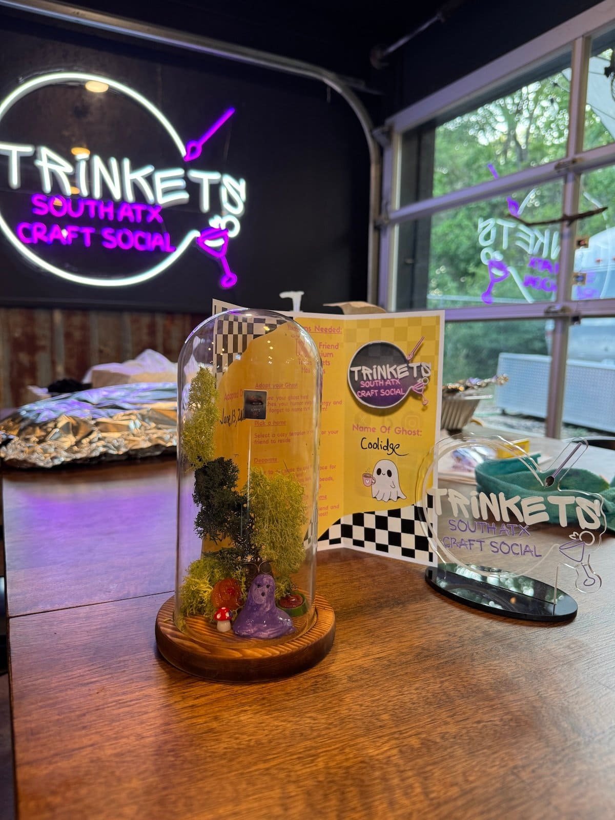 This is a South Austin craft social extravaganza. Trinkets is a do-it-yourself craft studio where artists and crafters get access to the tools and space they need to create. Choose from an assortment of “Which Craft” menu items, complete with instructions for making something beautiful. Or, if you’re feeling a bit more witchy, indulge in an a-la-craft session. Trinkets has a ton of endless…well, trinkets within its walls, just itching to be repurposed. I personally recommend the “Adopt a Ghost” Which Craft option, where you design a salarium for a friendly ghost. This lil’ guy is a wonderful addition to my home decor!